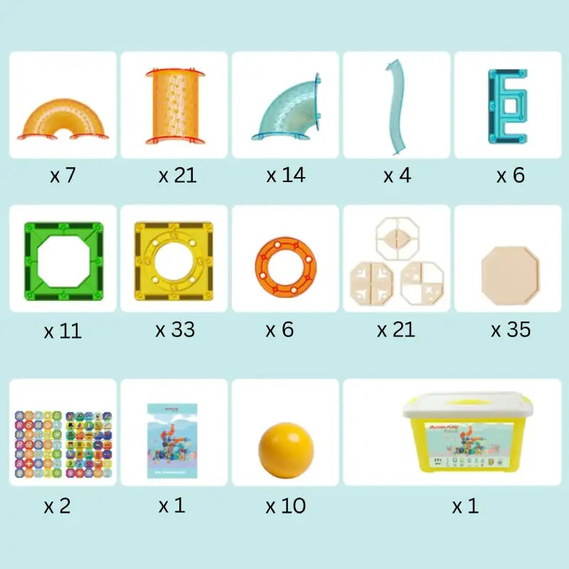 Avec ses 171 pièces aimantées faciles à emboîter, votre enfant peut commencer par de petites créations, puis relever de nouveaux défis en bâtissant des parcours spectaculaires.