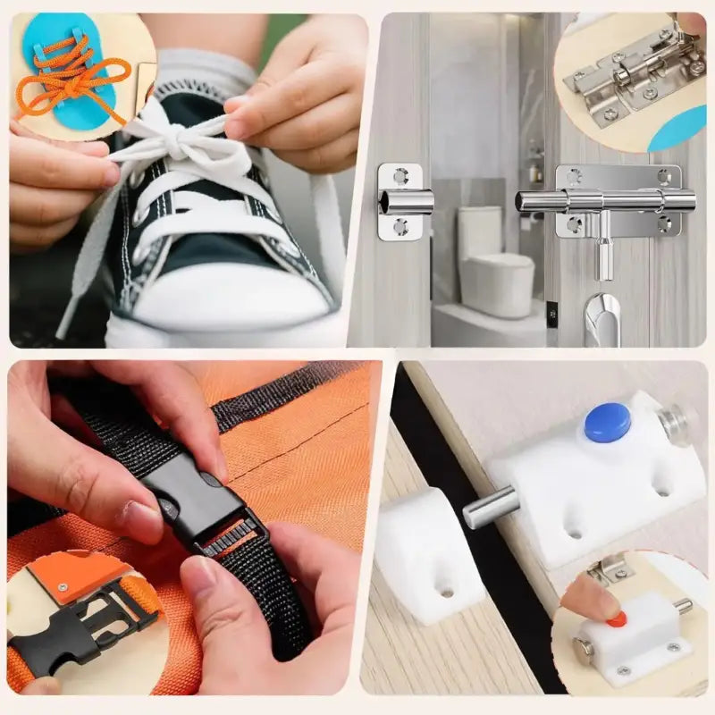 Planche de motricité Montessori avec Serrures et Formes - Busy Board